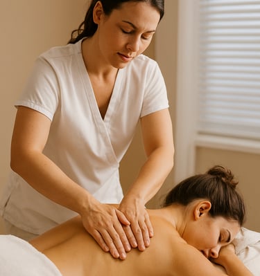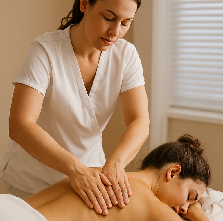 Técnicas de massoterapia para relaxamento e alívio de tensões, promovendo o equilíbrio corporal.